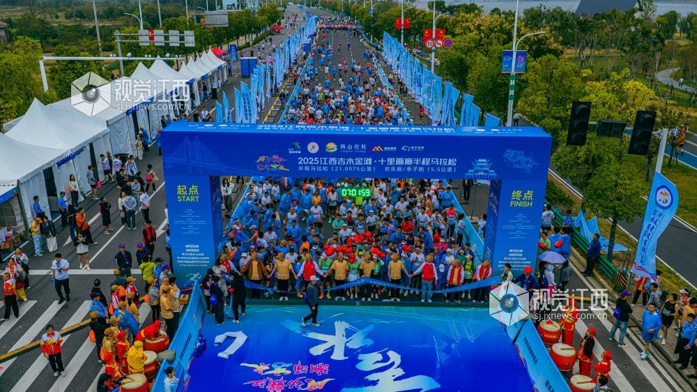 10月19日,2025江西吉水金滩?十里画廊半程马拉松在万众期待中鸣枪开跑。