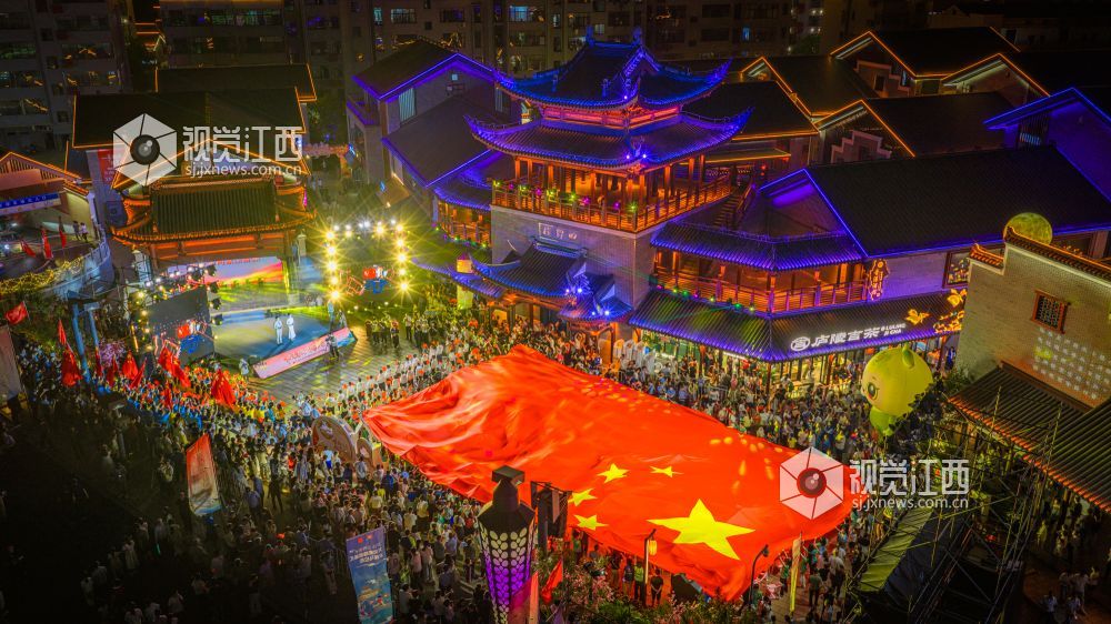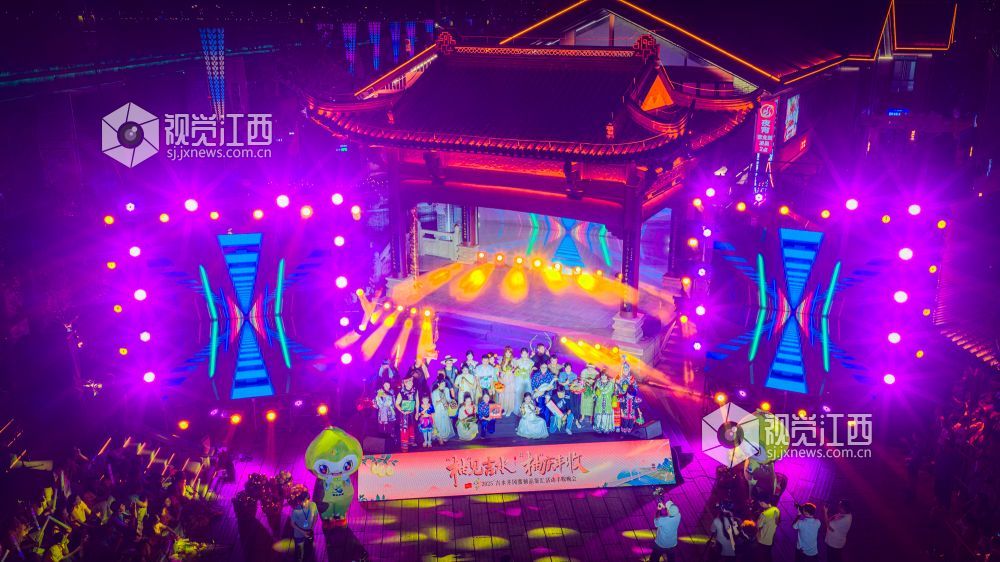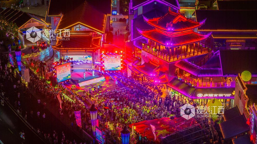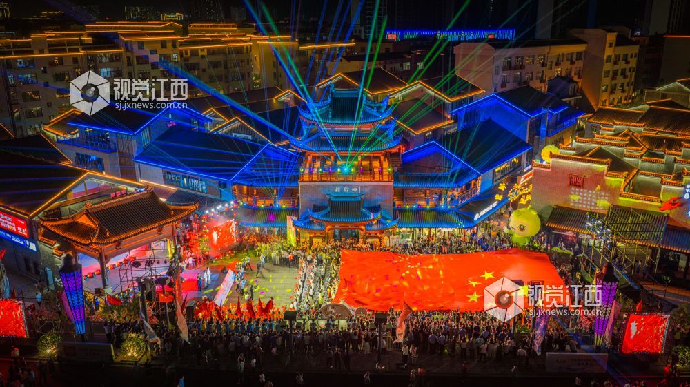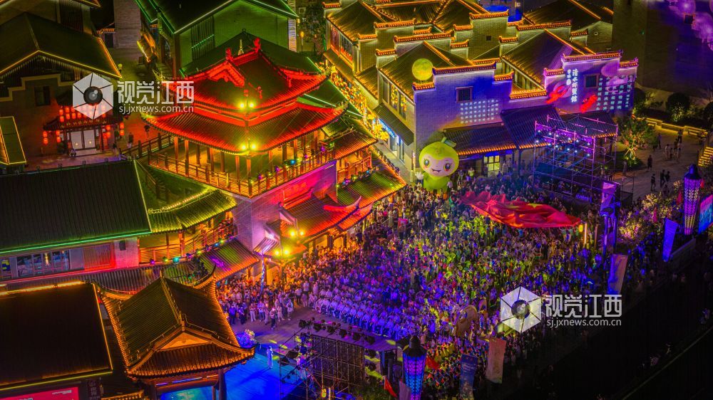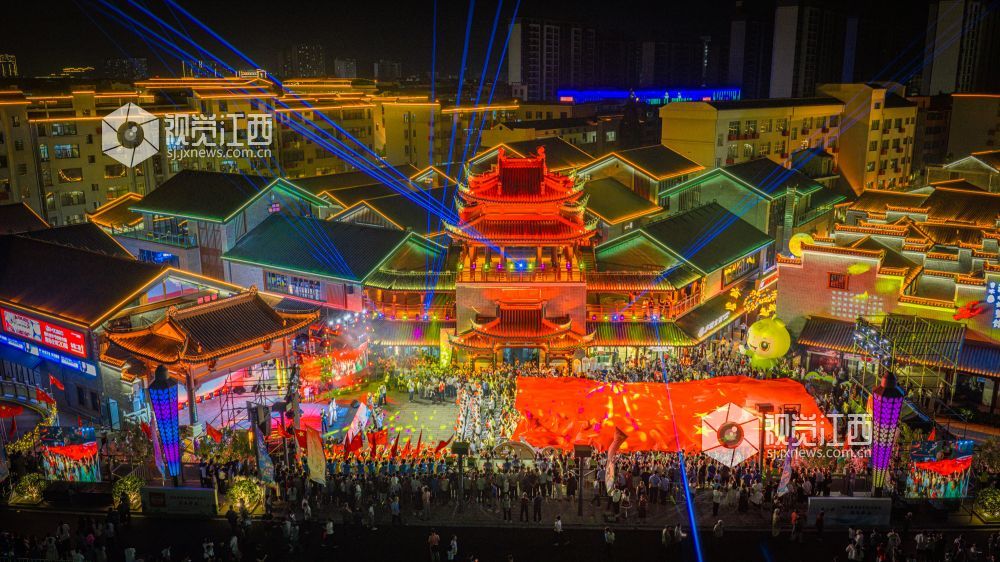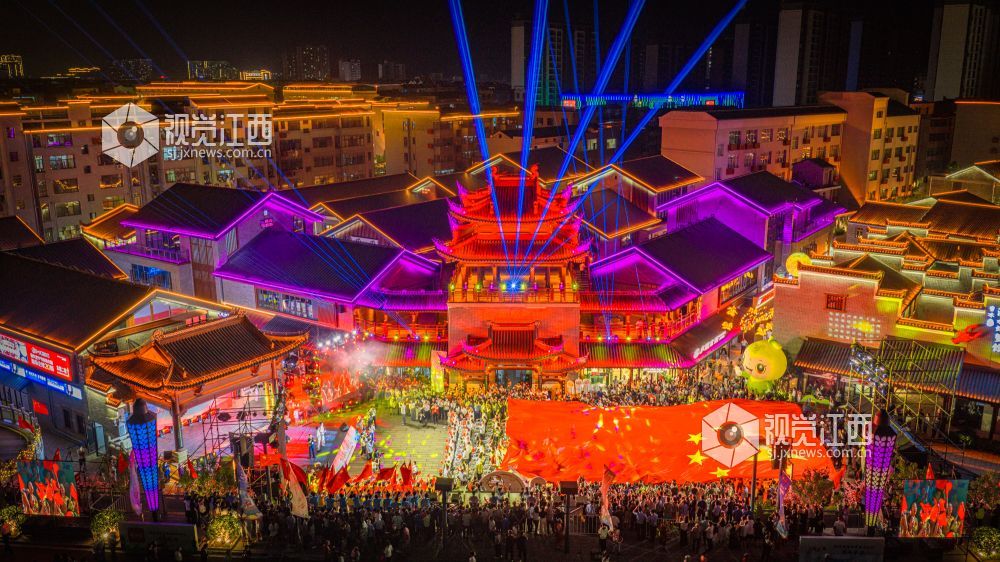 10月18日晚,江西省吉安市吉水县上下老街历史文化街区“柚子节暨非遗灯光秀”启幕。金黄蜜柚摊前排起长队,赣式骑楼被灯光串与非遗灯组点亮;主舞台处,巨幅国旗随《我和我的祖国》旋律在人群中展开,灯光秀激光束于古建飞檐间映出“吉水千年 柚见美好”,千余名群众合唱互动,非遗渔鼓演绎丰收故事。
