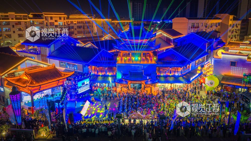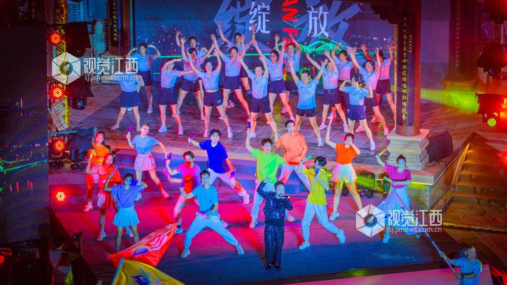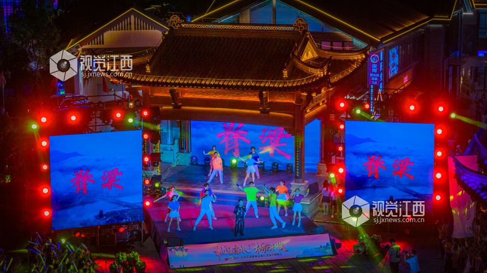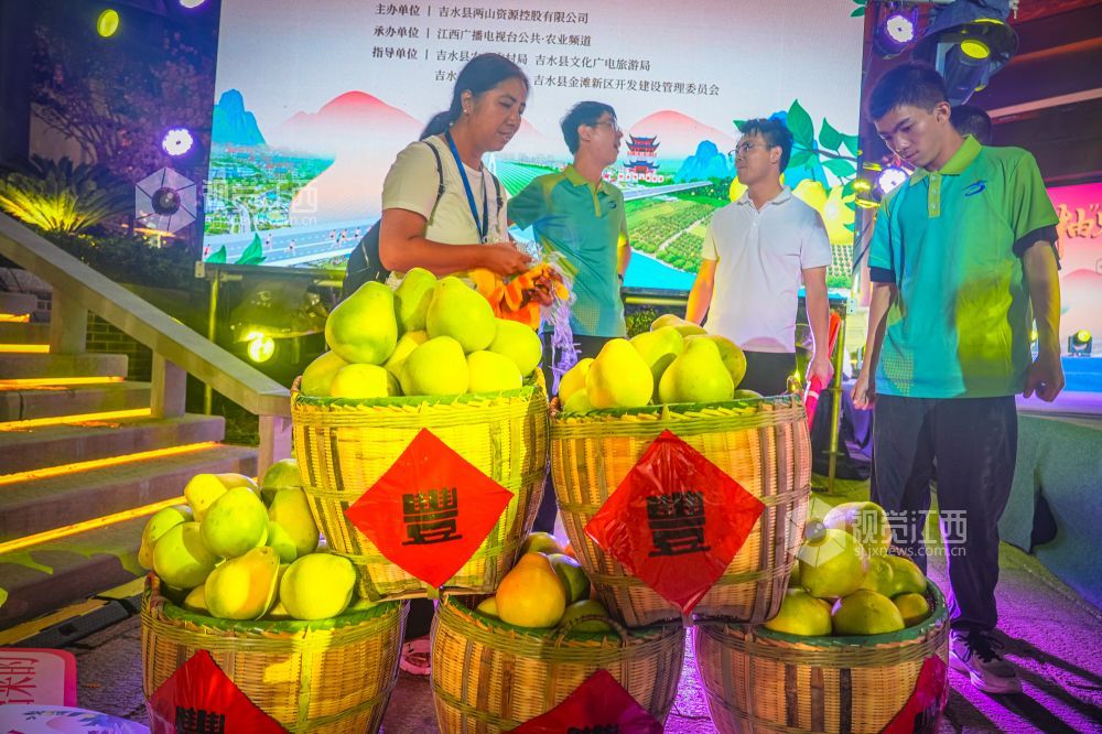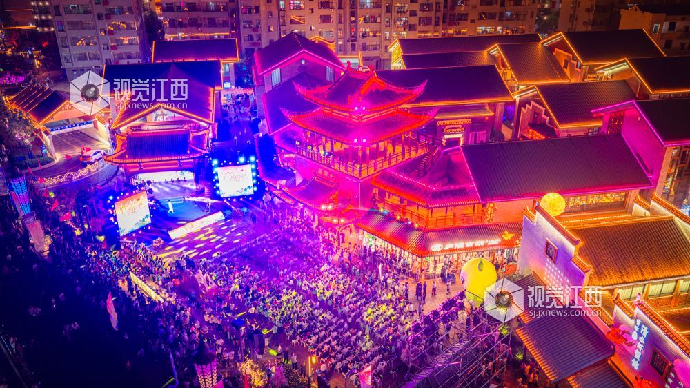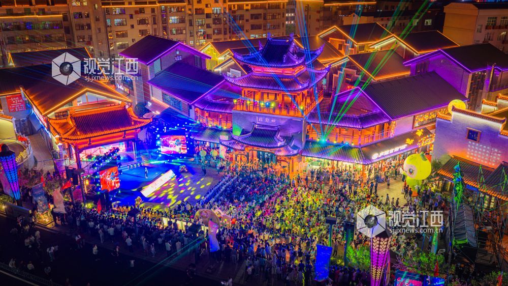 10月18日晚,江西省吉安市吉水县上下老街历史文化街区“柚子节暨非遗灯光秀”启幕。金黄蜜柚摊前排起长队,赣式骑楼被灯光串与非遗灯组点亮;主舞台处,巨幅国旗随《我和我的祖国》旋律在人群中展开,灯光秀激光束于古建飞檐间映出“吉水千年 柚见美好”,千余名群众合唱互动,非遗渔鼓演绎丰收故事。