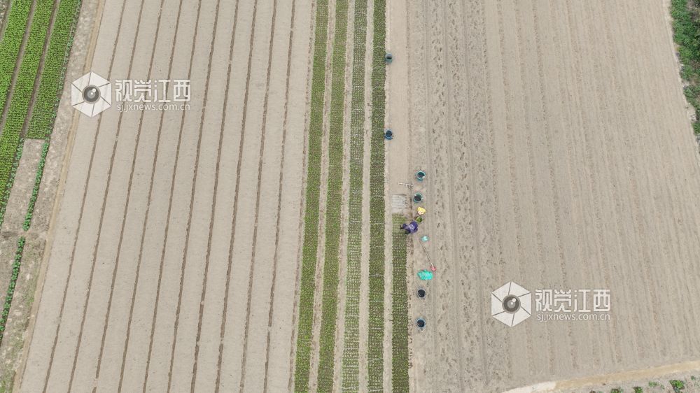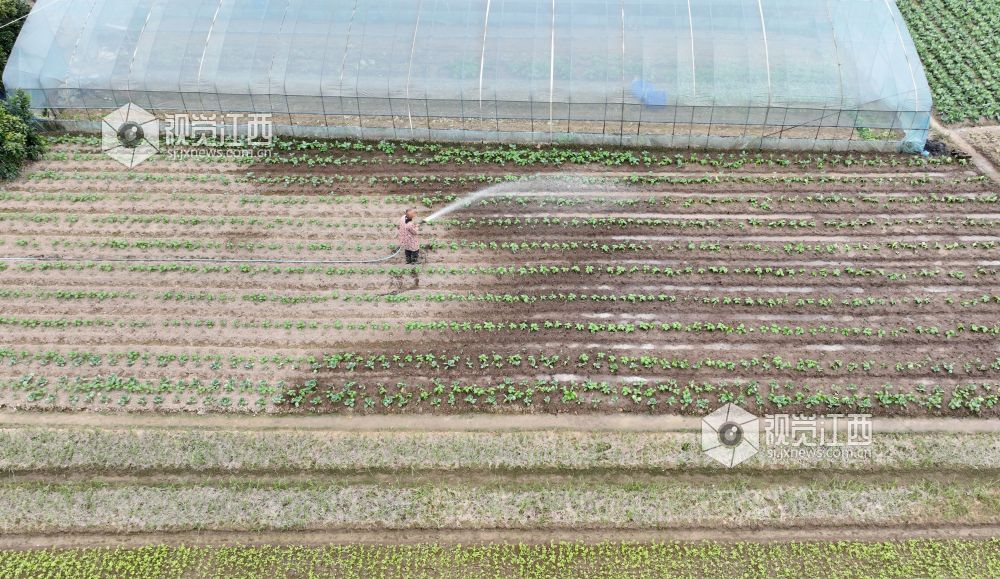 2025年10月26日,江西遂川县于田镇中洲村蔬菜种植基地里,农户们在田间地头忙碌,或管护菜畦、或操作灌溉设备浇水、或在田垄上开展种植作业。