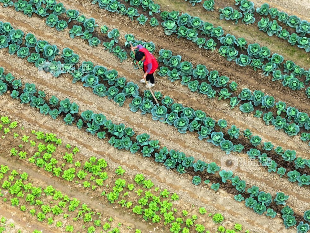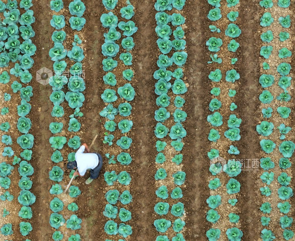10月27日,江西省吉安市泰和县澄江镇南门村,农民正在管护秋冬蔬菜。