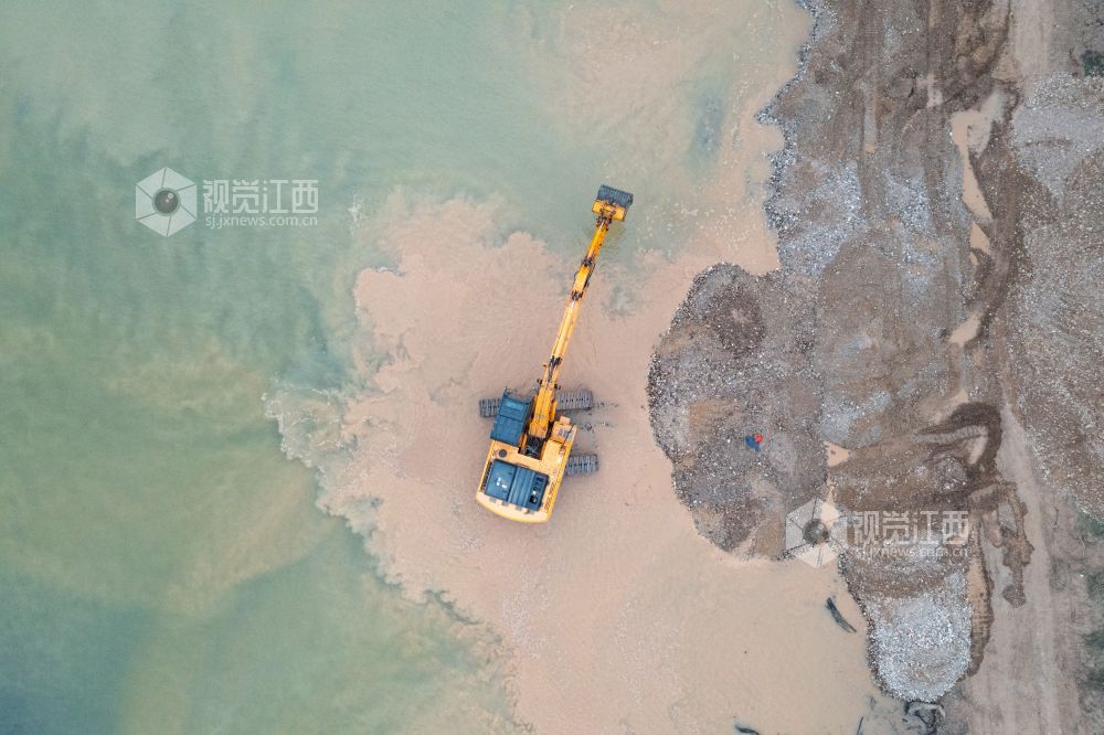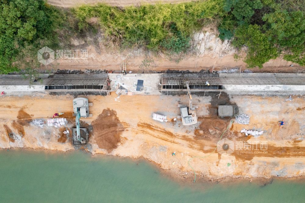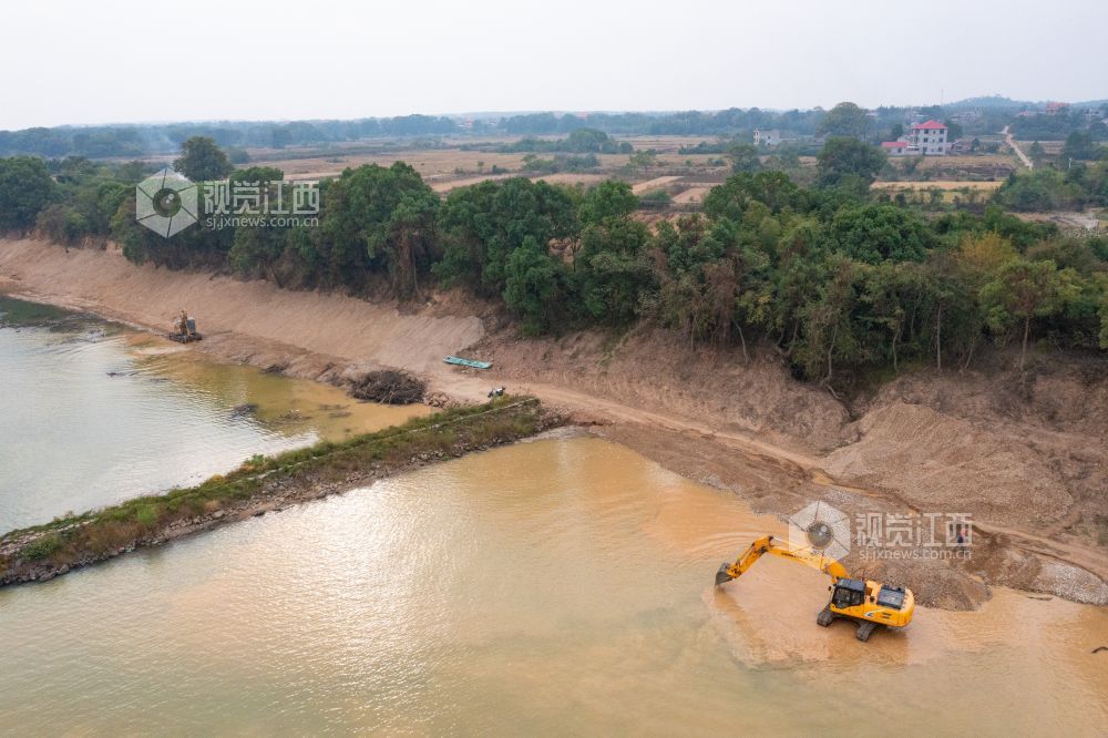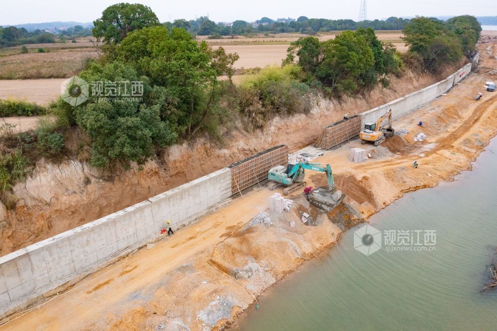 10月29日,江西省泰和县马市镇赣江段防洪堤建设现场一片忙碌,多台挖掘机有序作业,工人们抢抓晴好天气推进土方填筑。