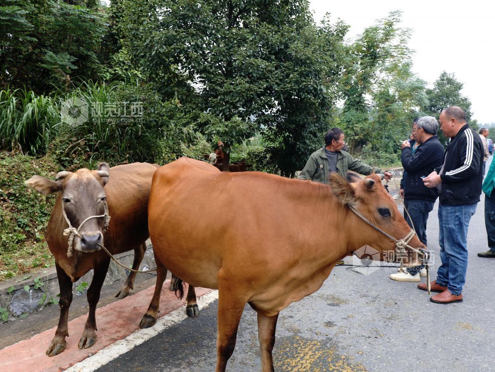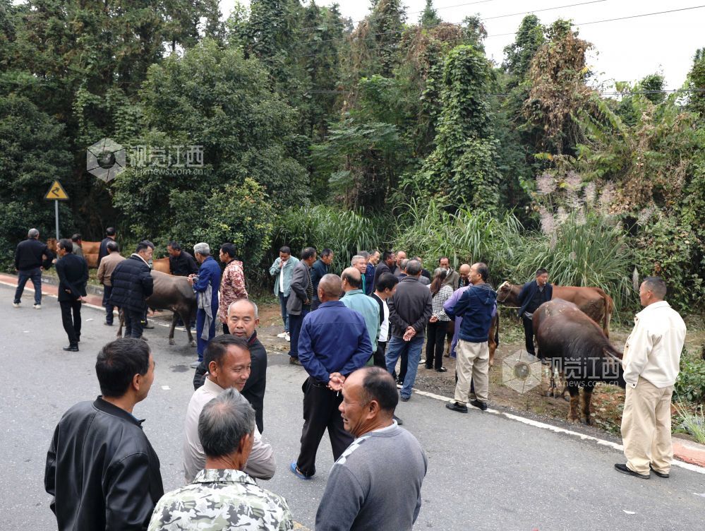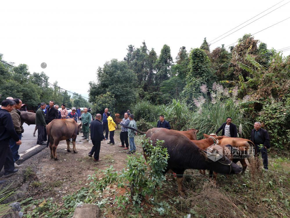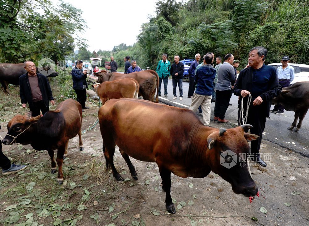 当日,来自四邻八乡的牛贩和村民用三轮车将耕牛、肉牛运往此处进行交易。牛市上,人们买牛、卖牛、相牛、探牛,各取所需;吆喝声、讨价还价声和牲畜的叫声融为一体,场面十分热闹。