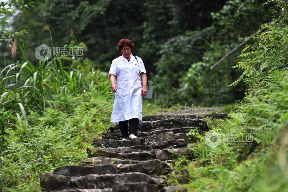 背着药箱,高银水行走在外出就诊的山路上。51年来,高银水几乎每天都要来回走上十几公里的山路。