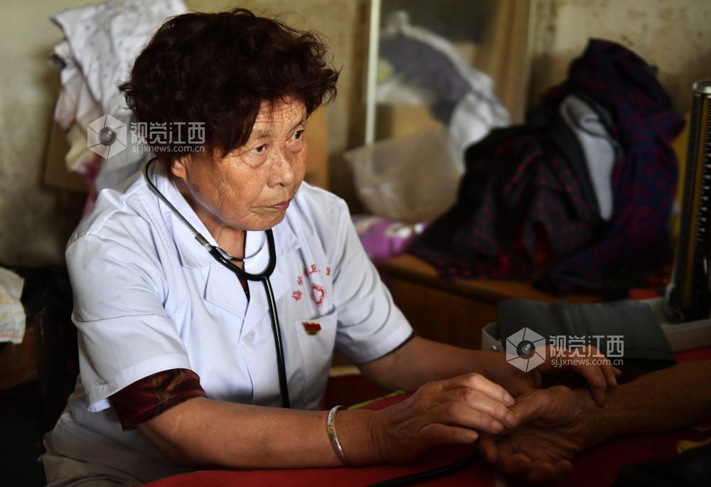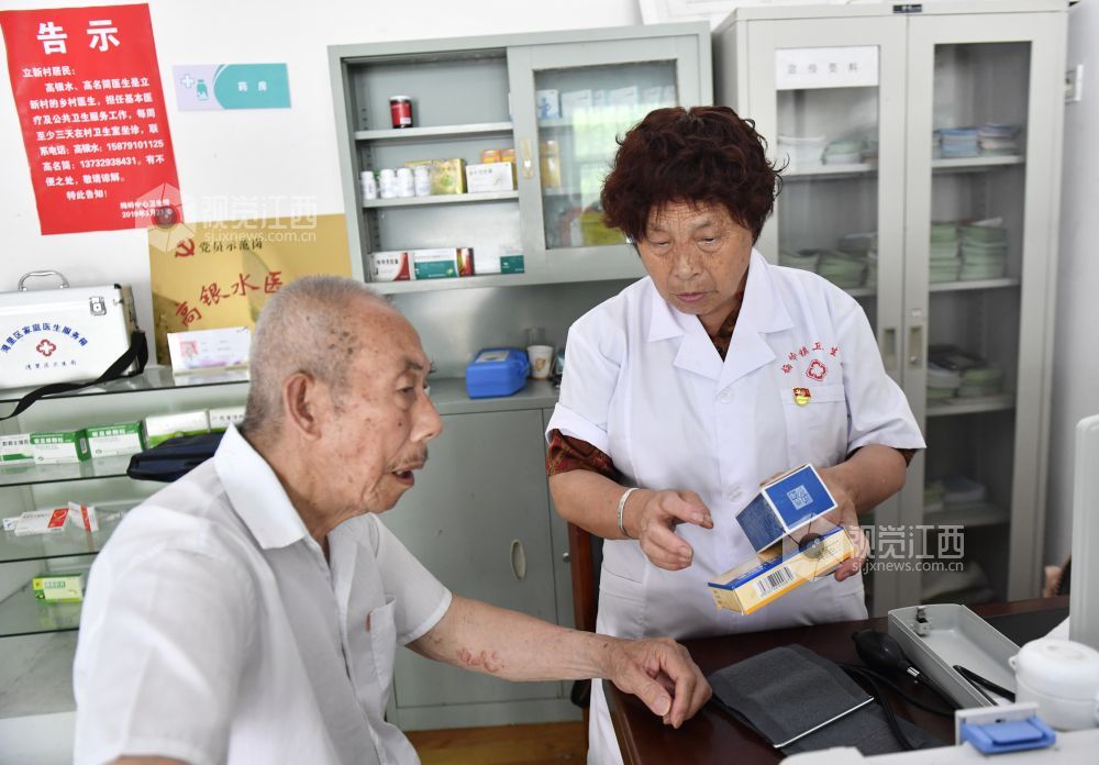 高银水正在为一位老人诊治。立新村共有9个自然村,是个典型的山区村,全村1500多人。“如今留在村里的多是中老年人。”行医多年的高银水熟知村里每一位老人的健康状况,哪位村民有什么病,谁家的媳妇什么时候到预产期,谁家的孩子什么时候该接种疫苗,高银水心里都记得清楚。
