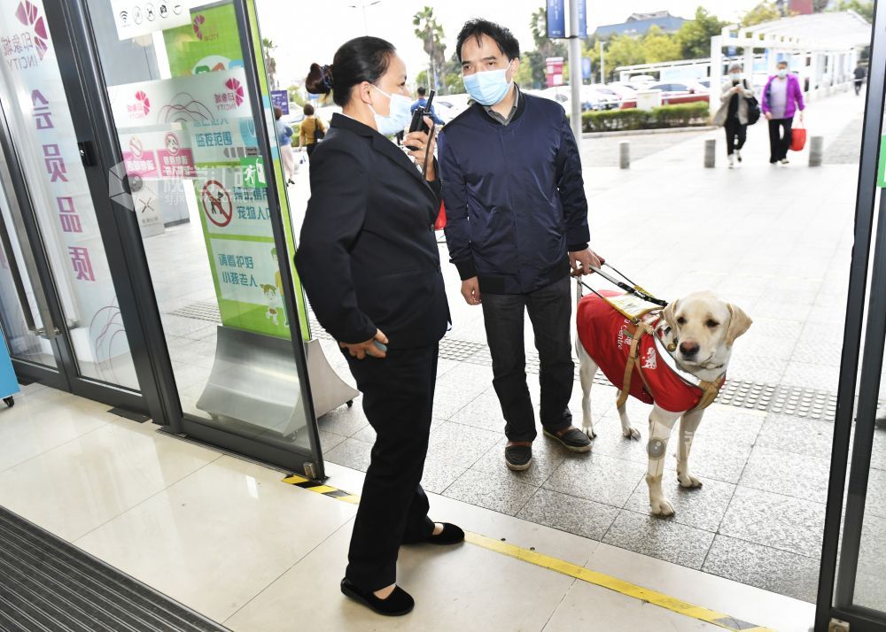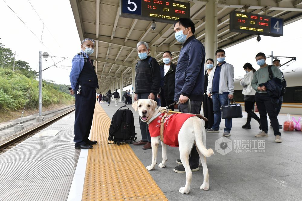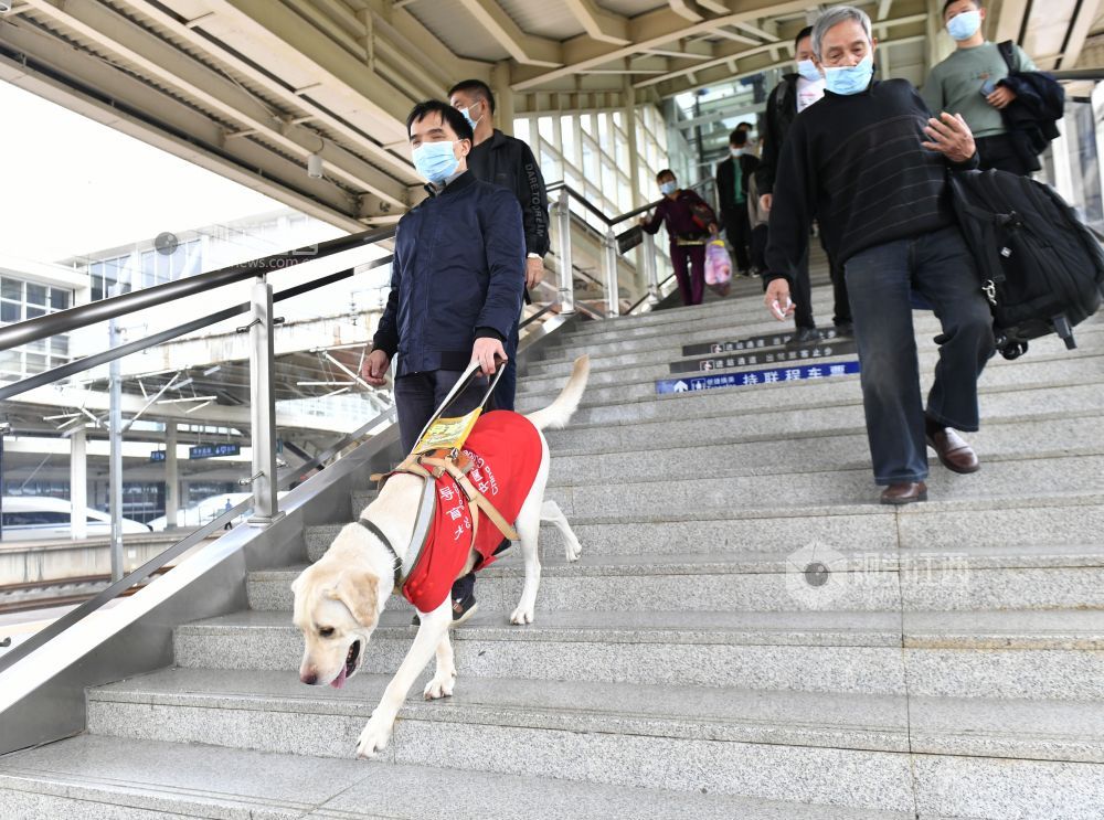 在高铁站,和主人等待上车的"史酷比",引起了不少乘客的关注。陈智谋告诉记者,对于导盲犬,市民应该遵循“四不一问”原则,不喂食、不抚摸、不召唤,不拒绝。不拒绝就是不要拒绝导盲犬进入公共场所或者是搭乘公共交通工具。一问就是在帮助盲人或者是导盲犬之前,一定要询问是否需要帮助。