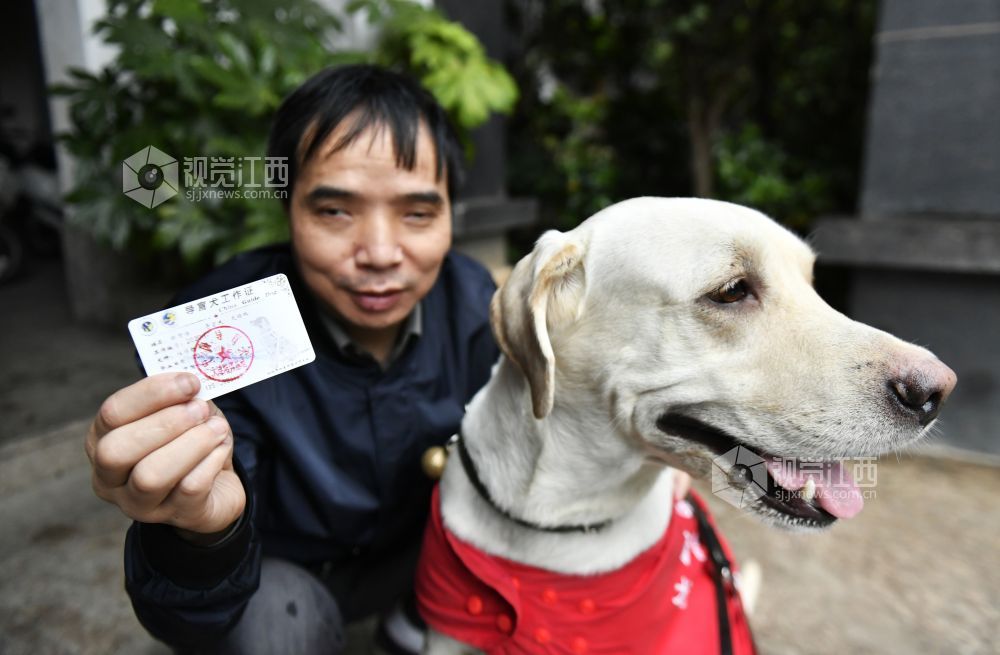 在役的导盲犬,除了红色背心和导盲鞍,还有专门的导盲犬证,陈智谋从来都是随身携带。