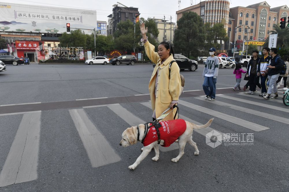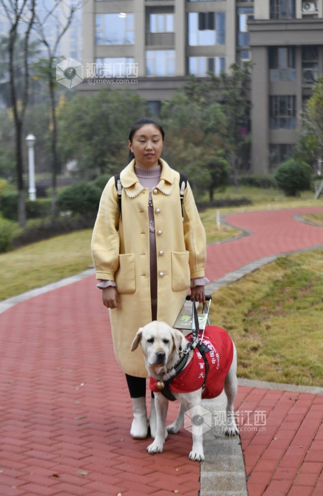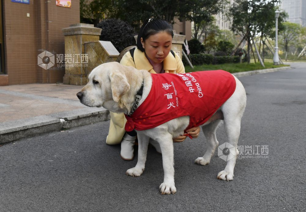 “爱莎,坐下、卧、等待。”在江西萍乡市一小区单元楼门口,贾君婷仙发出出行准备口令后,导盲犬爱莎切换进入工作模式。立刻与刚才慵懒粘人的模样判若两“犬”了。