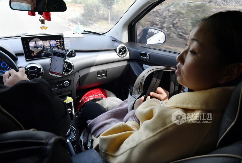 网约车来了,司机下车找到路边等候的婷仙,协助她上车。