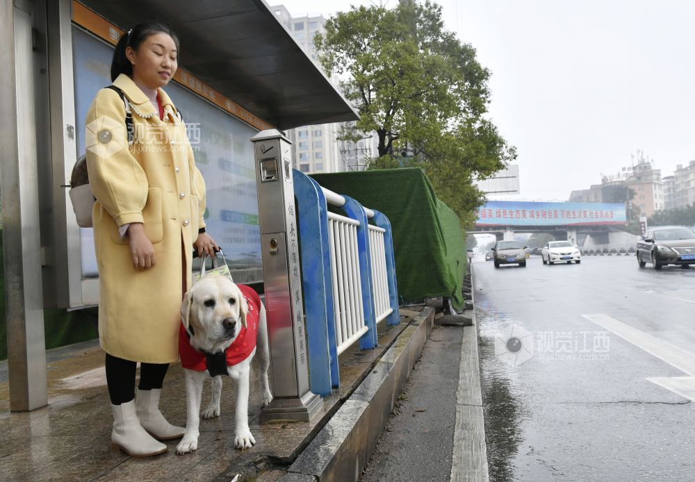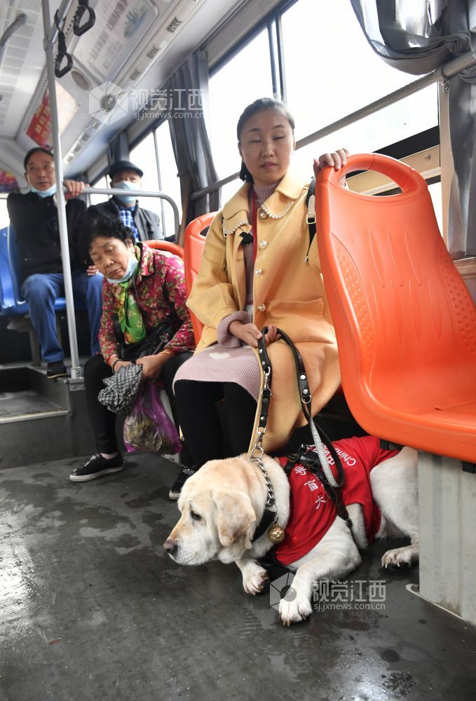 记者随着贾君婷仙和她的导盲犬爱莎在萍乡市内乘坐公交、除了接受不清楚“爱莎”是导盲犬的工作人员询问外,几乎没有受到任何阻挠。