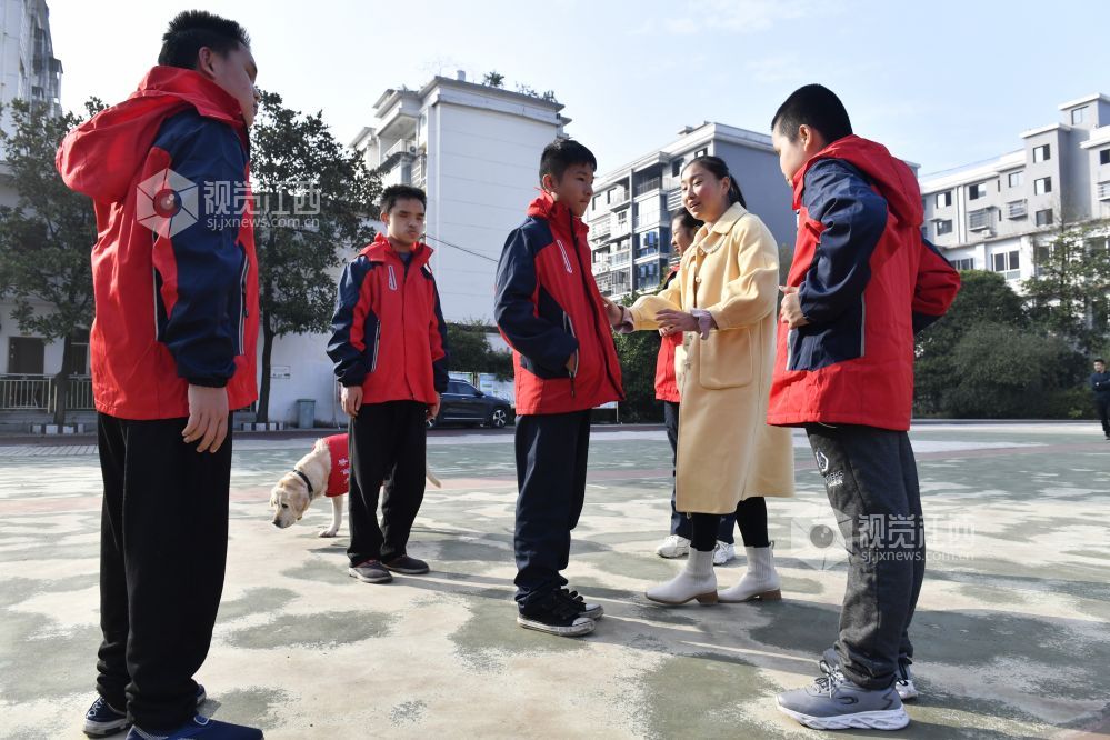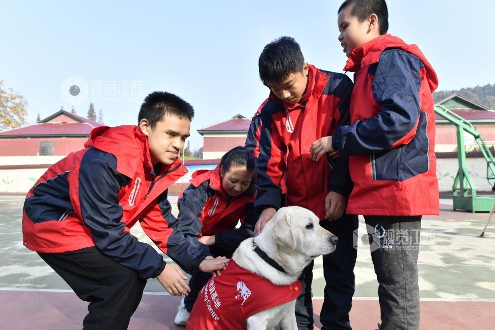 课间,盲童和导盲犬爱莎“亲密”接触。