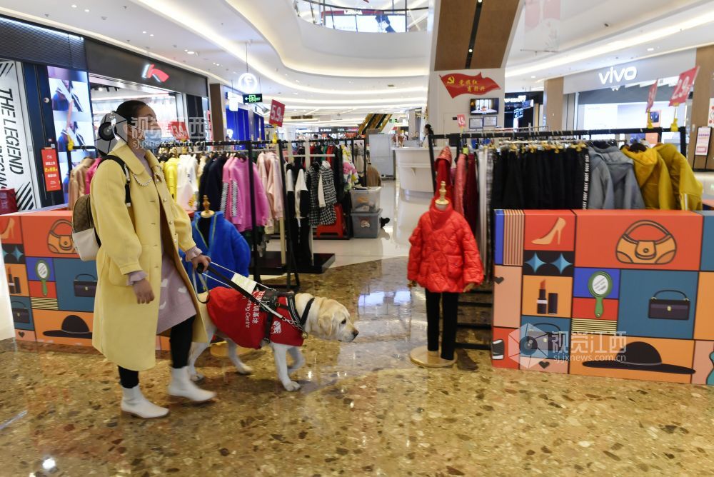 导盲犬爱莎带着婷仙,走进一家平时她们常逛的商场。