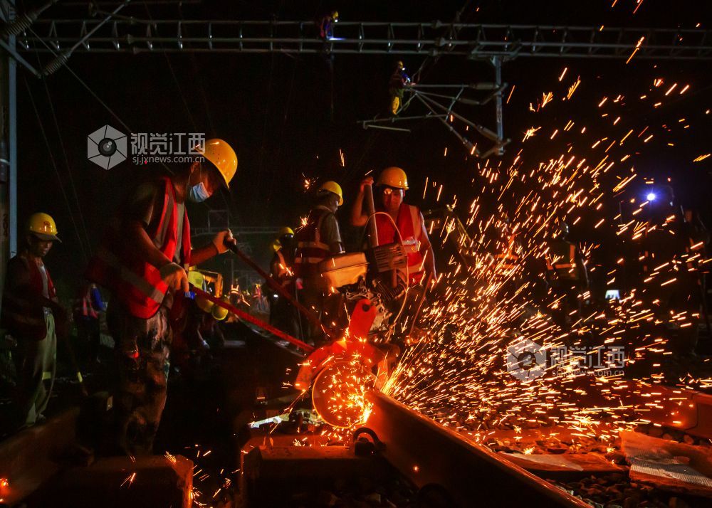 8月4日,深夜千人“会战” 安九高铁庐山站完成武九客专正线回拨。视觉江西 龙黎明 摄