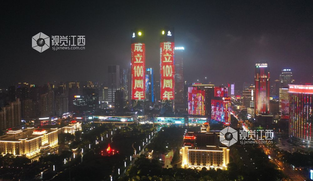 6月28日,庆祝建党100周年主题灯光微电影在江西南昌赣江两岸的高层建筑上绚丽上演。大江网/大江新闻客户端 邱业成 舒言诚 记者 王祺 摄