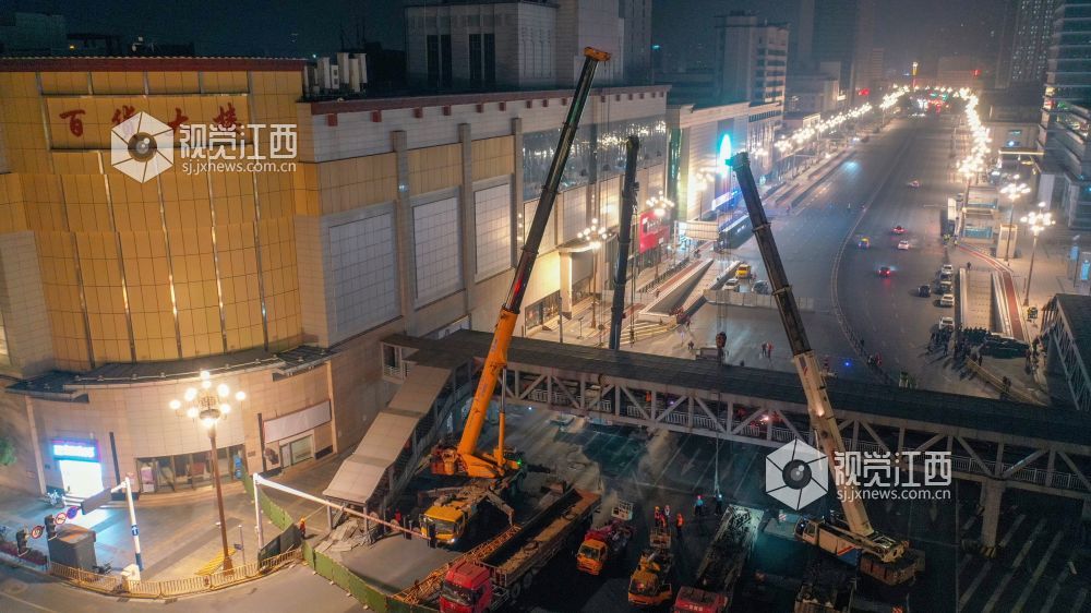 12月10日晚,南昌八一广场Y型人行天桥开拆。大江网/大江新闻客户端 舒言诚 摄