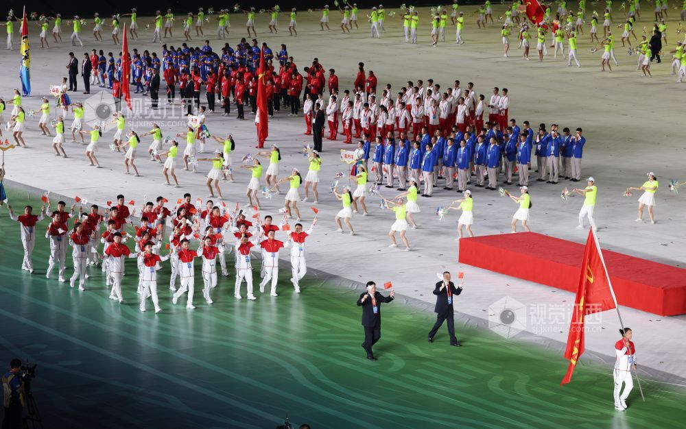 9月15日,全运会江西代表团入场,奥运冠军徐诗晓担任旗手。大江网/大江新闻客户端 记者 王祺 摄