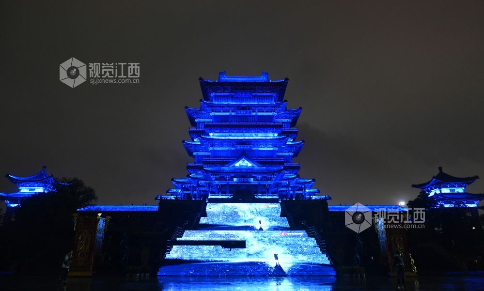 4月2日,世界第十四个“自闭症儿童关爱日”,南昌滕王阁为“星星的孩子”点亮蓝灯。大江网/大江新闻客户端 记者 王祺 摄