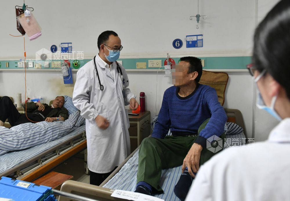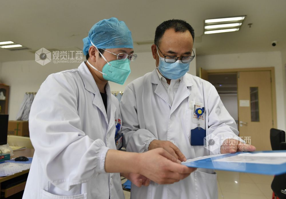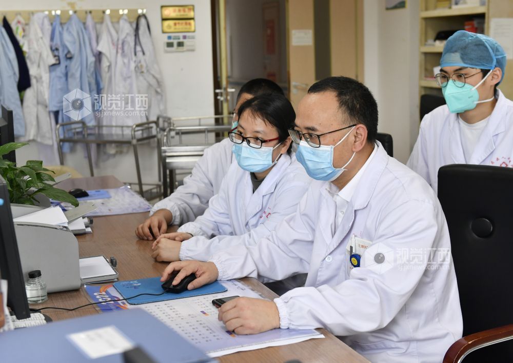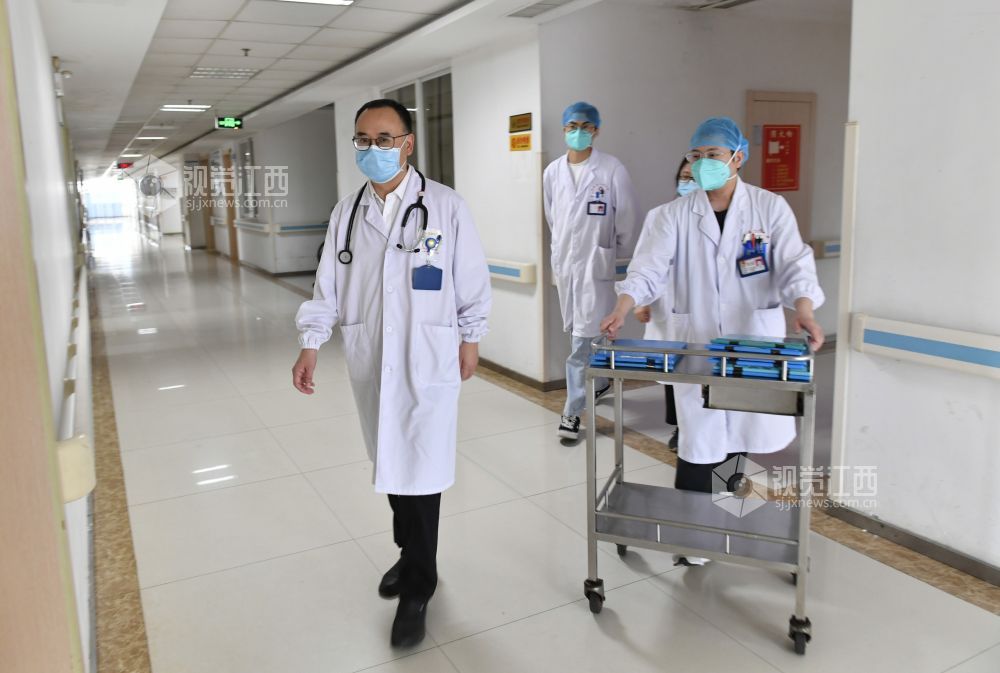 4月26日,罗燕军正在带着医生团队在科室内查房。3月以来,南昌新冠肺炎疫情形势严峻,呼吸科部分医护人员被抽调到防疫一线,目前只留下四名医生驻守医院后方。“虽然科室人员骤减,但为确保医院基本医疗服务不中断,我们每天照常进行门诊、查房等日常工作,接收转来呼吸科的发热病人。”