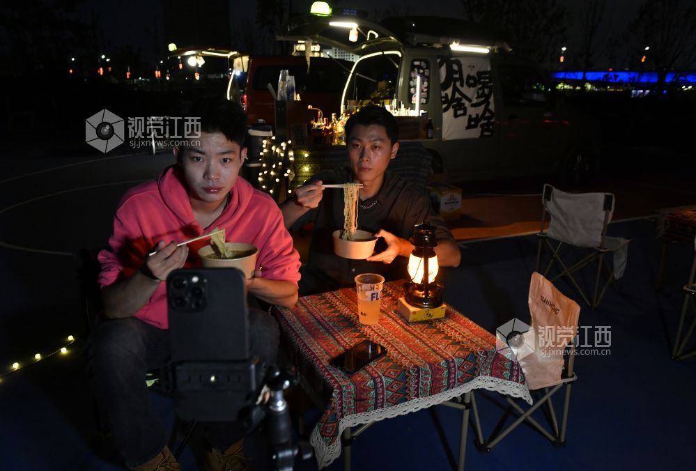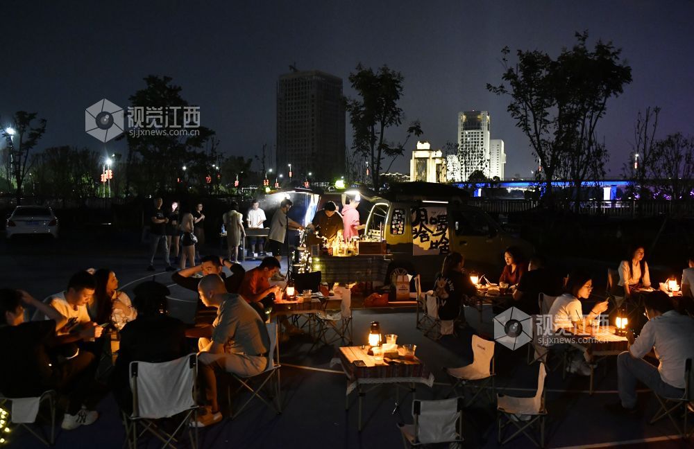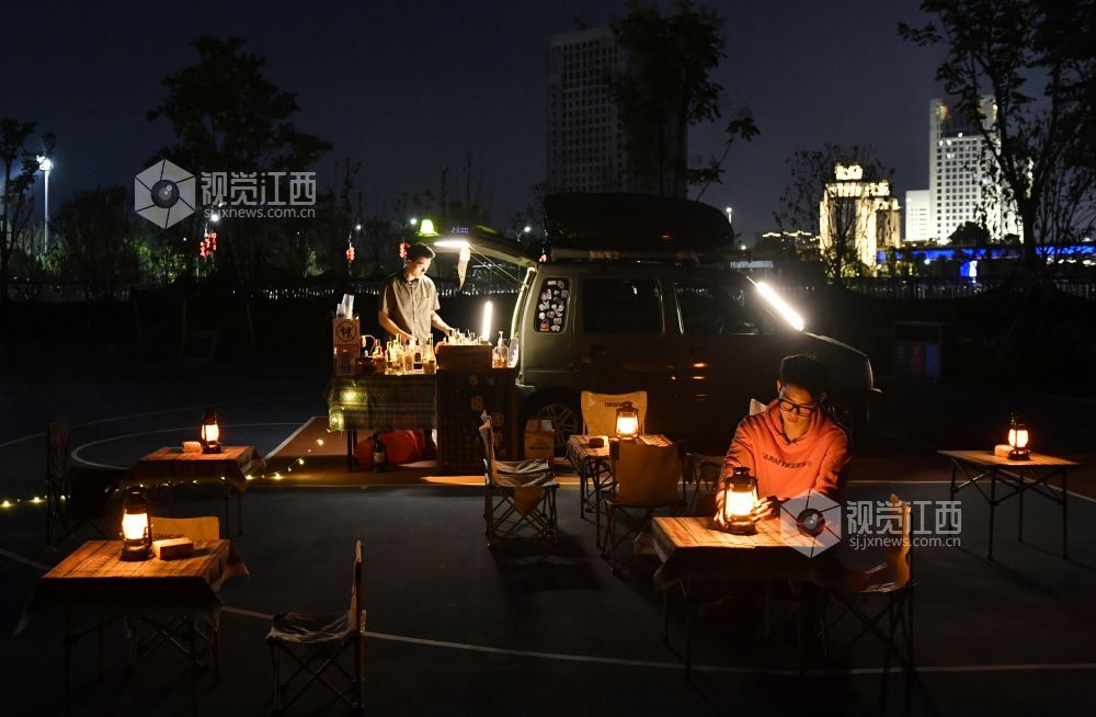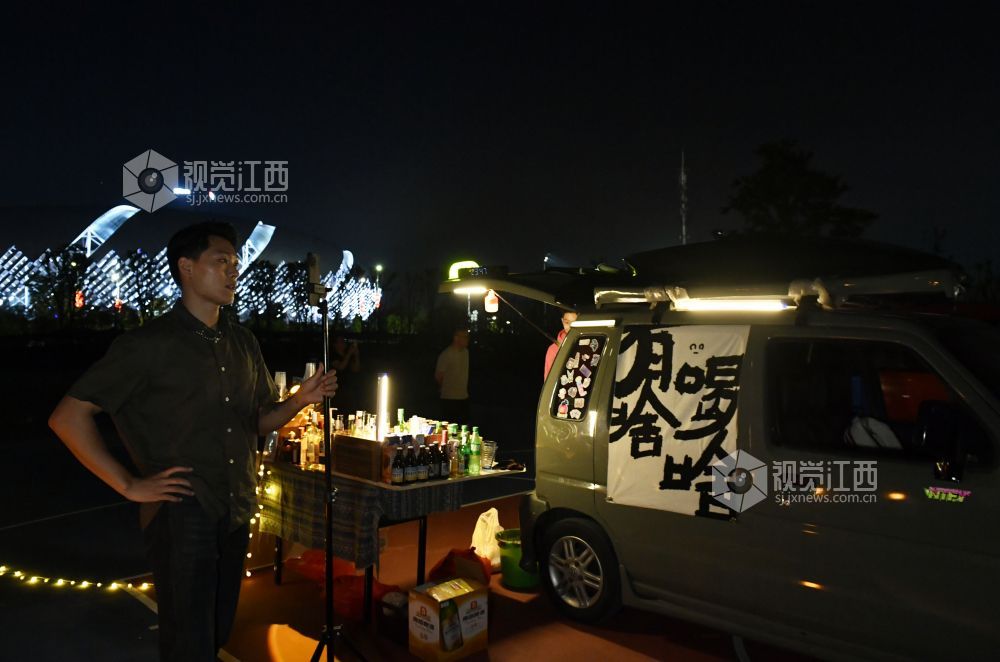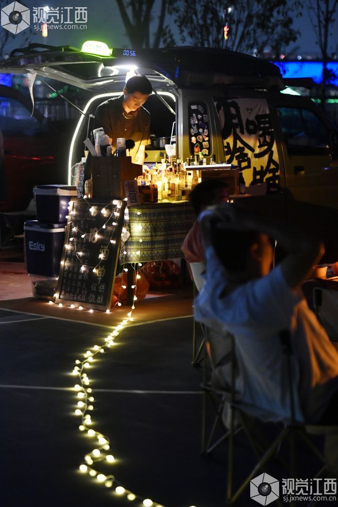 9月22日晚,江西省南昌红谷滩区的赣江畔,吕琦飞和他的伙伴们支起了他们的“7月末移动小摊”,打开社交网络平台的直播,等待着客人们的到来。