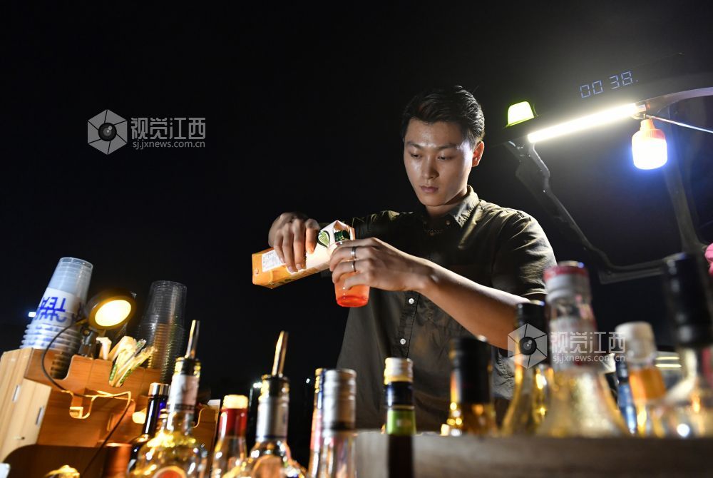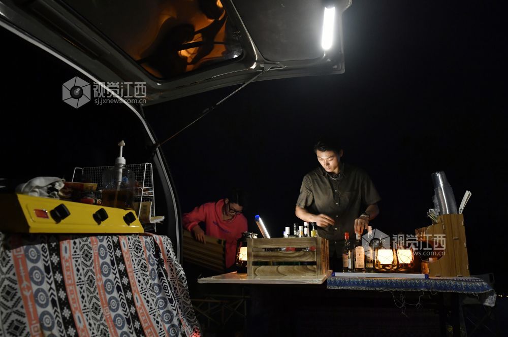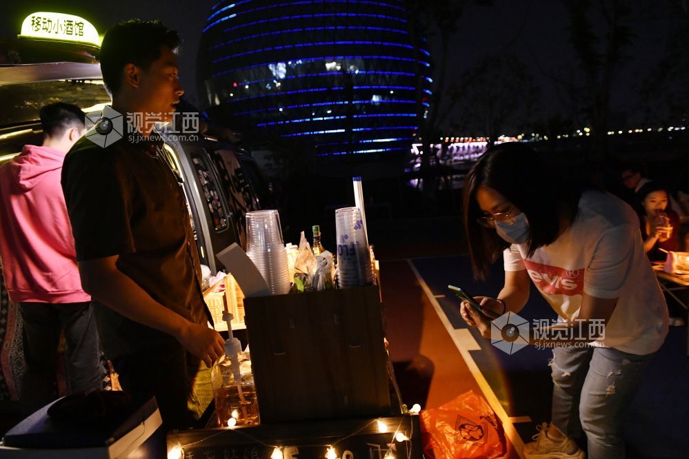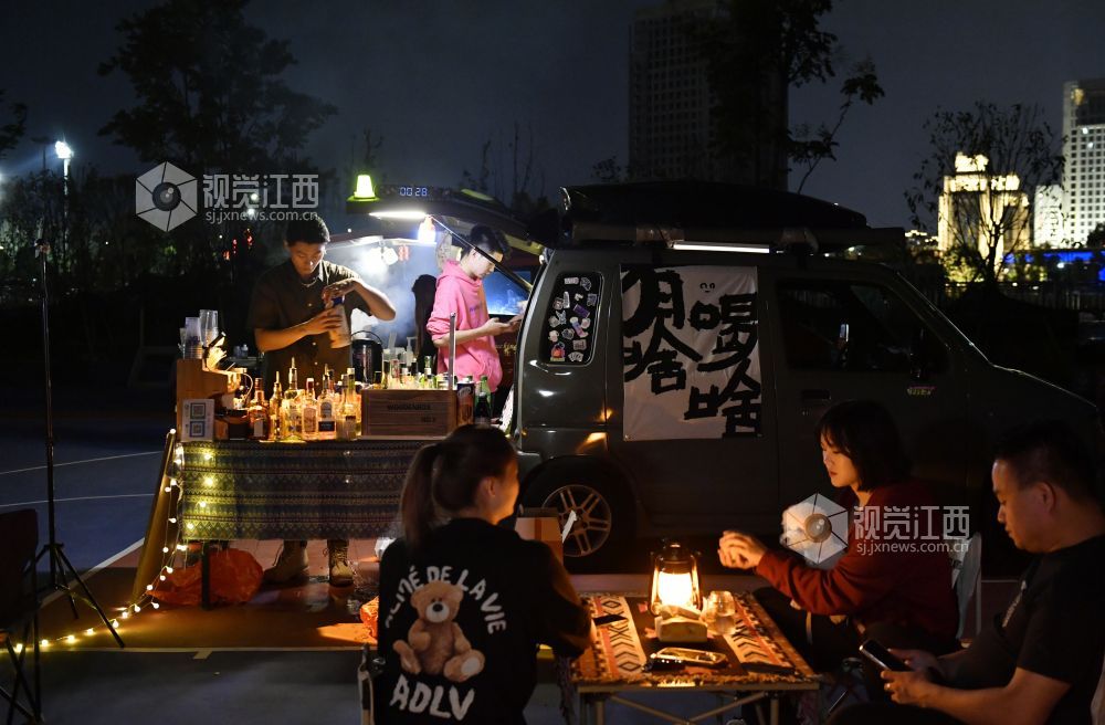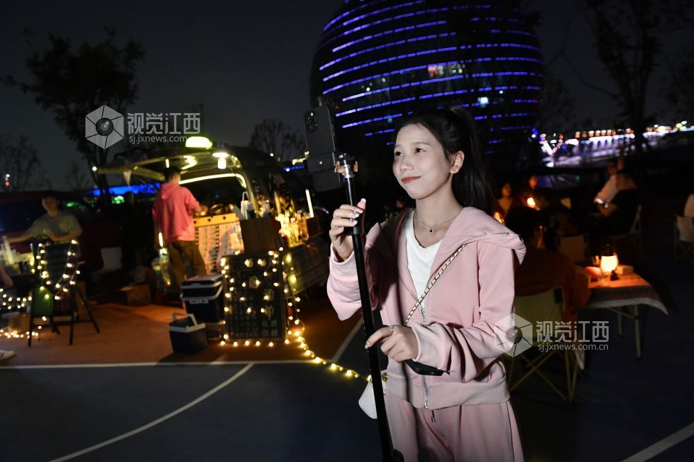 9月22日晚,江西省南昌红谷滩区的赣江畔,吕琦飞和他的伙伴们支起了他们的“7月末移动小摊”,打开社交网络平台的直播,等待着客人们的到来。