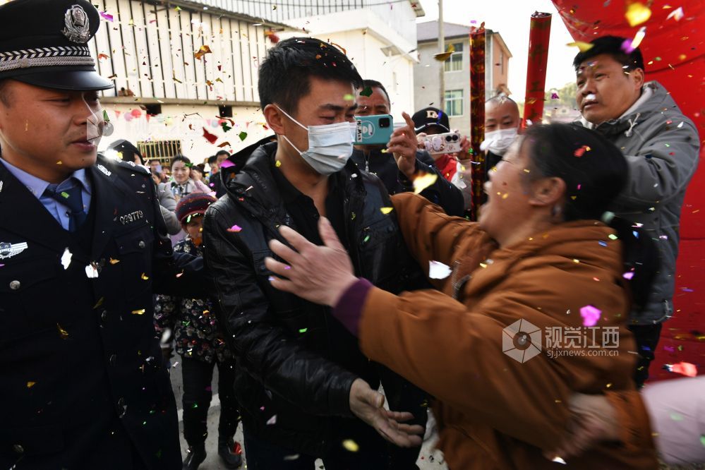 上午9时许,伴随着爆竹声响起,钱世清和余陈妹哭着拥向钱芳勇,抱在一起哭泣。这一刻,他们等了32年。