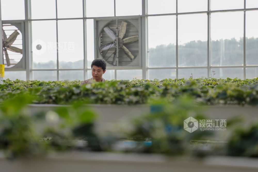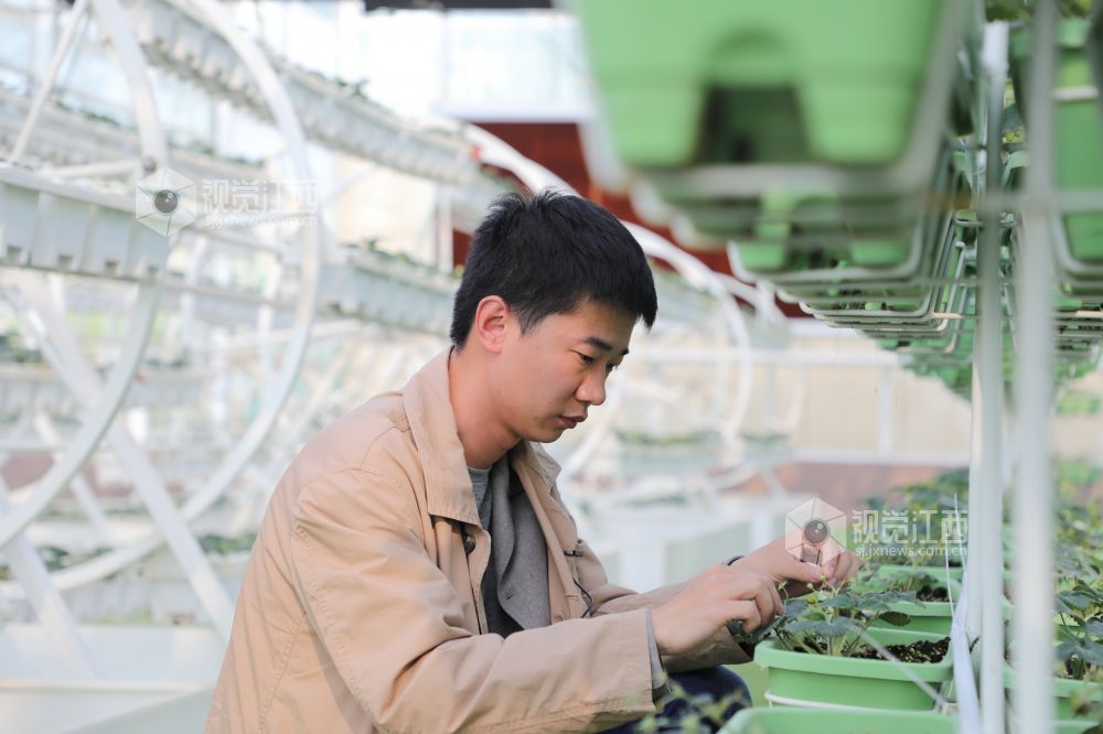 3月2日,南昌市红谷滩区元宇宙·VR数字农业示范基地里,90后的孙浩亮正在大棚里巡查,他是江西航天红源农业科技有限公司实验室主任,主要负责交互实验室及组培实验室管理。